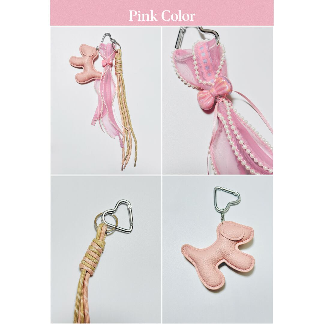 [Y2K] バレエコア・ぷっくりリボン&ドッグレザーキーリング / バックチャーム / Y2K / ガーリー / 推し活